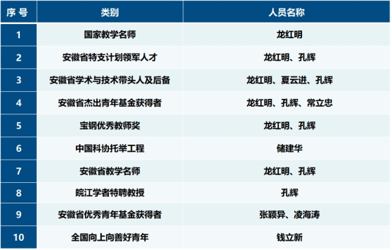 本专业培养的员工在全国老员工“挑战杯”取得优异成绩,获全国一等奖和金奖各1项;专业获国家级教学成果二等奖、安徽省教学成果奖特等奖、一等奖和二等奖各1项;获安徽省科技进步二等奖、三等奖各2项,冶金科学技术三等奖4项。