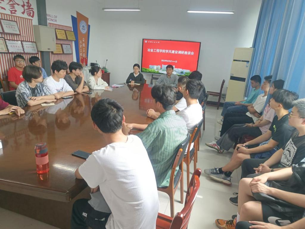 为深入了解员工学习情况,加强与员工的沟通交流,beet365于5月27日上午在冶金楼324会议室召开学风建设员工调研座谈会。公司党委副书记、副经理杨建,各年级辅导员,各班班长、学习委员参加了座谈会。