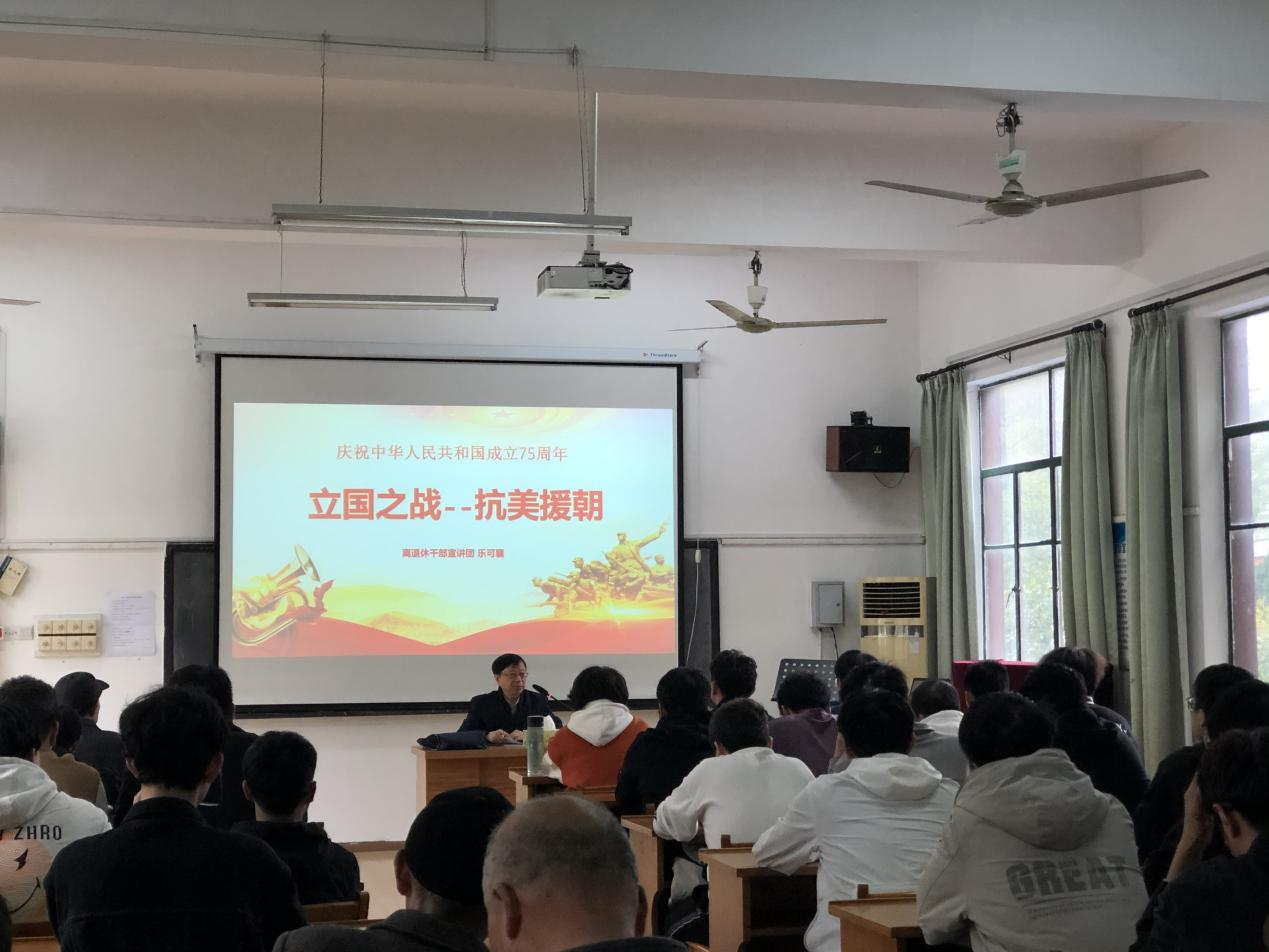 为深入学习宣传贯彻党的二十大精神,讲好红色故事,传承红色基因,激励员工努力成为堪当民族复兴大任的时代新人,4月3日下午,beet365退休教师乐可襄教授在本部老干部处二楼教室以“庆祝中华人民共和国成立75周年系列宣讲报告之立国之战——抗美援朝”为题进行爱国主义教育宣讲,beet365大一新生聆听了讲座。