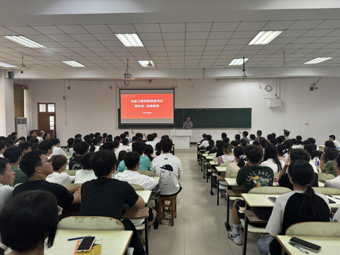 会议伊始,经理龙红明作题为《低碳与智能冶金,助力中国式现代化发展》的主题报告,详细介绍了公司发展历程、团队队伍、人才培养等方面内容,帮助新生了解冶金等相关行业的发展趋势与未来方向,促使新生对所学专业有了更加深刻的认识。