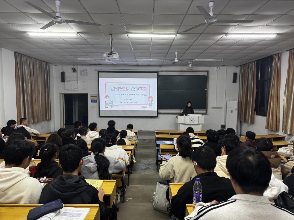 11月21日晚,beet365于佳山校区第一教学楼101教室举办2024级新生入学适应教育讲座院心理工作站站长王倩主讲,2024级全体新生参加了此次活动。