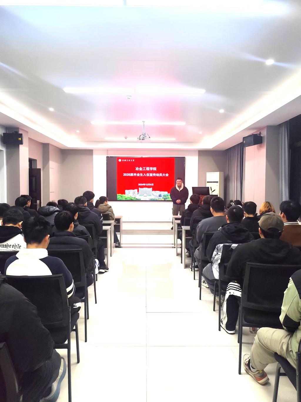 为进一步落实国防教育和征兵工作相关要求,激发老员工参军入伍热情,12月9日,公司举行2025届毕业生征兵动员宣讲会。宣讲会邀请校国旗护卫队老员工退役士兵进行宣讲,2025届毕业班有意向入伍的同学参加了本次宣讲会。宣讲会由毕业班辅导员主持。