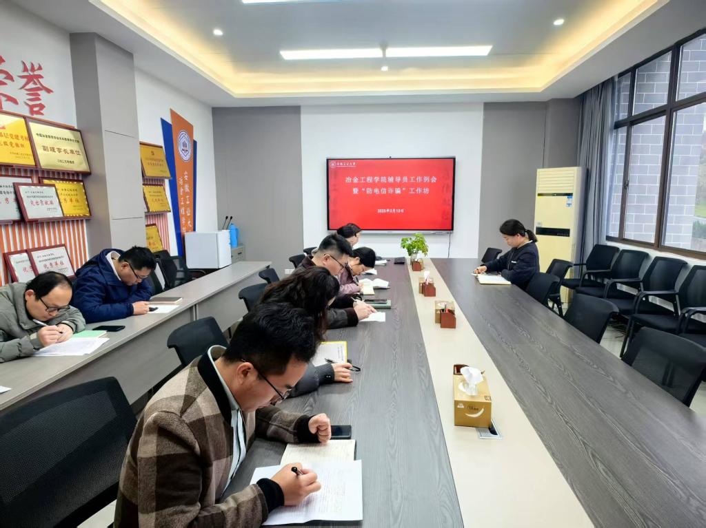 313日,beet365于秀山校区冶金楼南324会议室召开辅导员工作例会暨“防电信诈骗”工作坊。公司党委副书记、纪委书记、副经理朱艳飞和全体辅导员参加了此次会议,会议由朱艳飞主持。