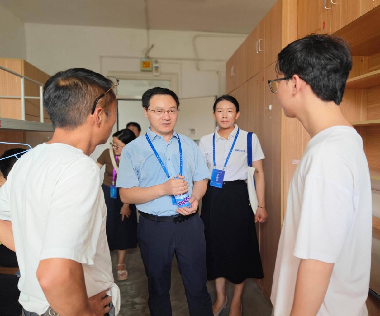 9月6日上午,院领导、2025级新生班主任及辅导员一行深入新生宿舍,亲切看望刚刚入校的新同学及其家长,了解同学们的入学感受、环境及生活适应等情况,认真倾听大家的意见建议。