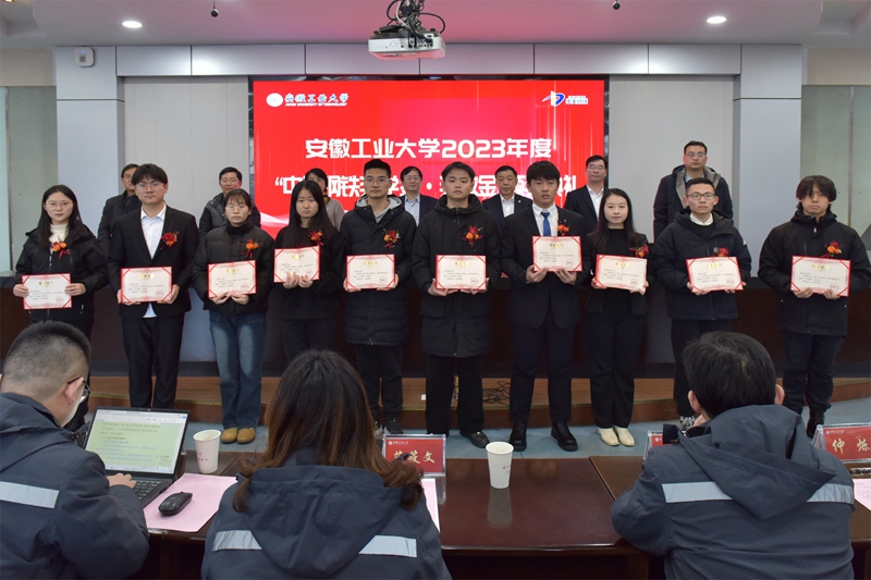 赵金涛代表中天钢铁集团对学董事长期关心支持企业发展表示感谢,对获奖师生表示祝贺,并介绍了集团概况、装备技术、企业文化以及员工在企发展情况。希望进一步深化校企产学研合作,实现企业、公司、师生多方共赢,欢迎更多的安工大学子加入中天,共同缔造属于“钢铁人”的强国梦。