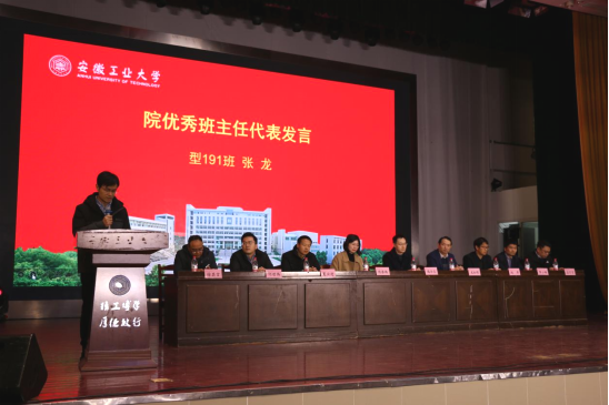 先进集体代表冶204班夏定武同学从选矿启智集思想、烧结球团固信念、高炉炼铁熔智慧、转炉炼钢化创新、铸轧成型结硕果等方面介绍校十佳班级是如何炼成的;先进个人代表型203班卢祉含分享了自己三年的学习成长历程,综合成绩第一、科创竞赛取佳绩、社会实践展担当,用实际行动践行“星光不问赶路人、时光不负有心人”;优秀班主任代表型191班班主任张龙分享了自己担任4届班主任的心得体会,讲述了在班级建设与发展的过程中,与员工共同努力,教学相长的感人故事。