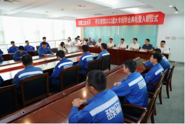 7月13日上午,beet365官方网站2022届中天钢铁大专班员工毕业典礼暨入职仪式在江苏省常州市中天钢铁集团行政大楼三楼第一会议室举行。公司党委书记陆林、副董事长王先柱、中天钢铁副总裁赵金涛及党办校办、教务处、beet365等负责同志、2022届全体中天钢铁大专班毕业生参加仪式。
