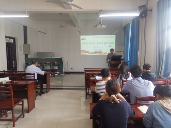 杨建传达学习了《安徽省普通高等公司发展党员工作实施细则》及《beet365官方网站发展党员工作实施细则》,从“入党材料撰写与审核”“发展党员的会议组织”“各环节注意把握事项”三个方面,详细介绍了发展党员工作程序和规范。