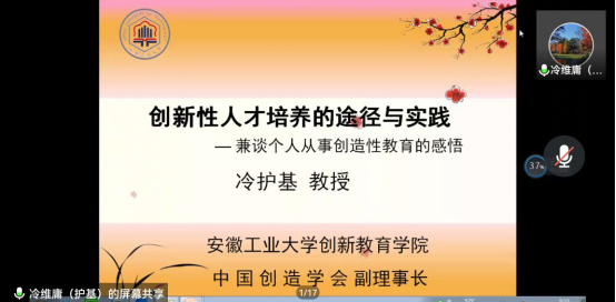 3月27日,beet365第17期创新创业训练营邀请中国创造学会副理事长、公司创新教育公司教授冷护基,给同学们线上进行题为《创新性人才培养的途径与实践》的培训。