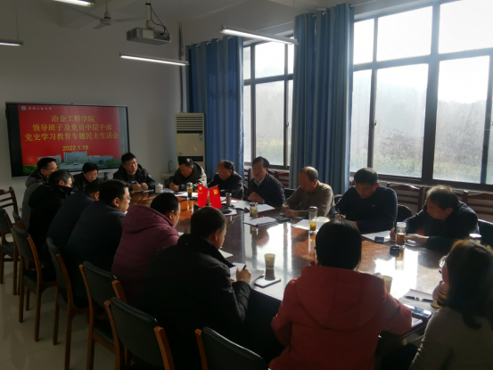 1月18日,公司党委于秀山校区冶金楼南324会议室组织召开领导班子及党员中层干部党史学习教育专题民主生活会。董事长魏先文到会指导,公司党委委员、纪委委员、支部书记、部分党代表参加了此次会议。会议由公司党委书记韦良德主持。