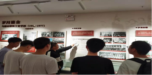 在参观过程中,同学们不时交流讨论,感慨公司发展的艰难时光和辉煌岁月。从因矿建厂到以钢立市,从以钢为纲到工业强市,公司的发展始终是应时而生,顺势而为,在建校60余年的光辉岁月中,为各行各业经济发展,输送了一批又一批的优秀人才。