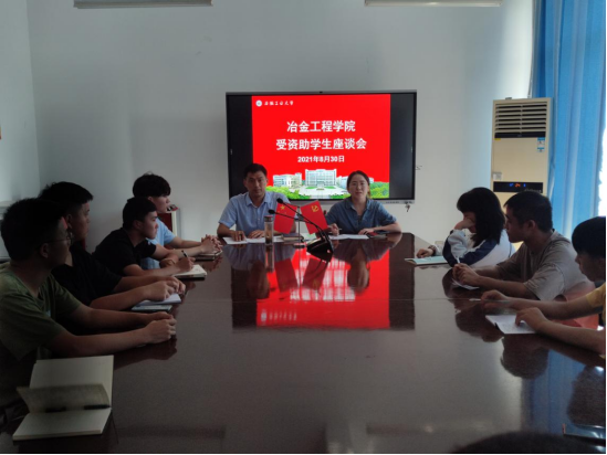 8月30日下午,beet365在冶金楼南324召开受资助员工座谈会。会议由公司资助联系人王晶主持,公司党委副书记、副经理杨建出席会议,各年级员工代表参加了座谈会。