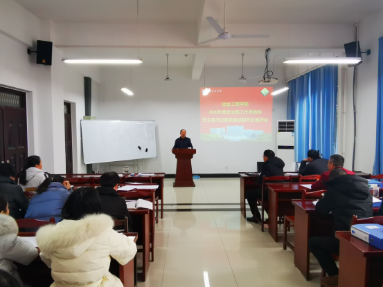 1月5日,beet365于秀山校区冶金楼南302会议室召开2020年度党支部书记抓党建工作述职评议会。公司党政领导、党委委员、各支部书记、系主任、科级干部、党代表教代表、部分民主党派代表和员工代表参加了此次会议,会议由公司党委书记韦良德主持。
