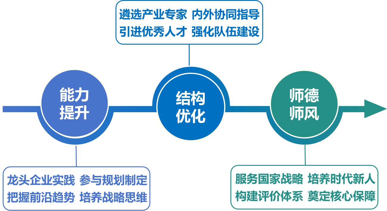 (4)团队结构创新:系统性地解决了传统团队在支撑国家战略导向型人才培养中存在的知识结构滞后、产业经验不足、协同育人乏力等关键瓶颈,以学术与产业双栖、创新与育人并重为思路构建团队建设新范式。通过教师战略能力提升、校企导师协同指导、优秀青年人才引进、强化师德师风建设这一途径,打造了一支兼具深厚学术造诣、丰富产业经验、敏锐战略眼光和高尚育人情怀的新型研究生导师队伍。