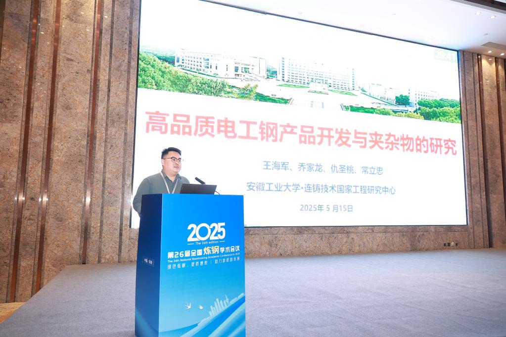 公司常立忠教授、夏云进教授、王海军副教授、张超杰副教授、从俊强博士和储建华博士等一行6人受邀参加此次学术盛会。王海军副教授作了题为“高品质电工钢产品开发与夹杂物的研究”的大会报告,储建华博士作了题为“高锰钢液与MgO基耐材相互作用行为及洁净度控制研究”分会场报告,详细介绍了在无取向硅钢和高强塑性高锰钢领域的最新研究进展,研究成果引发现场广泛讨论和深度交流,获得与会专家高度评价,提升了公司在高端钢种开发领域的学术影响力。