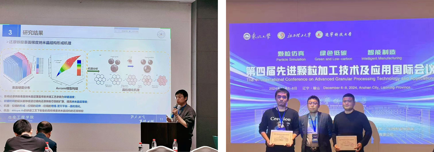 公司吴朝阳副教授和王锐博士后在矿冶加工过程优化分会场作报告,其报告题目分别为“Study on the formation mechanism of gradient nanoerystalline structure on the surface of reduced iron powder and the controllable diffusion behavior of silicon”和“Study on structure design and performance optimization strategy of high silicon steel soft magnetic composites ”,研讨相关领域关键问题以及科技创新的方向和路径,引发与会专家学者强烈共鸣与反响,现场互动气氛热烈,其中王锐博士的报告得到在场专家的高度认可,获得了最佳口头报告荣誉。(撰稿:王锐 审核:罗梦婷 夏云进 龙红明)
