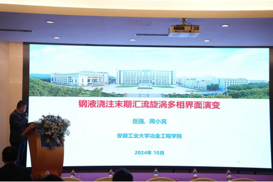 本次会议设有6个专题,分别是绿色智能钢铁冶金、有色冶金及新技术、先进金属材料及高端制造、资源循环及高值化利用、新能源及电化学冶金和冶金、材料新工艺新技术。岳强副经理做了题为《钢液浇注末期汇流旋涡多相界面演变》(Evolution of multiphase interface in confluence vortex at the end of ladle teeming)的特邀报告,介绍了课题组近年来在智能炼钢和电磁冶金方面的研究进展,引起参会专家的热烈交流。(撰稿:张颖异 审核:罗梦婷 夏云进 赵卓)