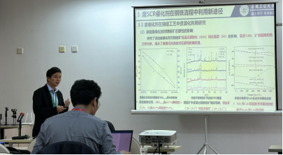 丁龙同学做了题为《烟气脱硝废SCR催化剂在钢铁流程中资源利用研究》报告,介绍了烟气脱硝过程中废催化剂形成原因和当前处理废催化剂的研究进展,提出了基于钢铁生产流程处理废催化剂的新方法,汇报了团队最新研究成果与进展。