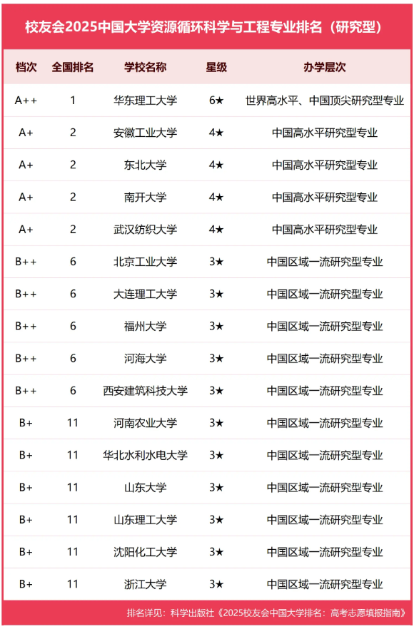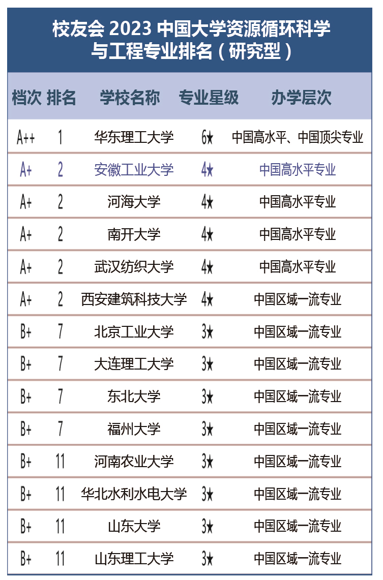 近期,在全国第三方大学评价机构艾瑞深员工会网正式公布的《2025员工会中国大学排名:高考志愿填报指南》中,我院资源循环科学与工程专业位居A+档次,连续三年排名全国第二。